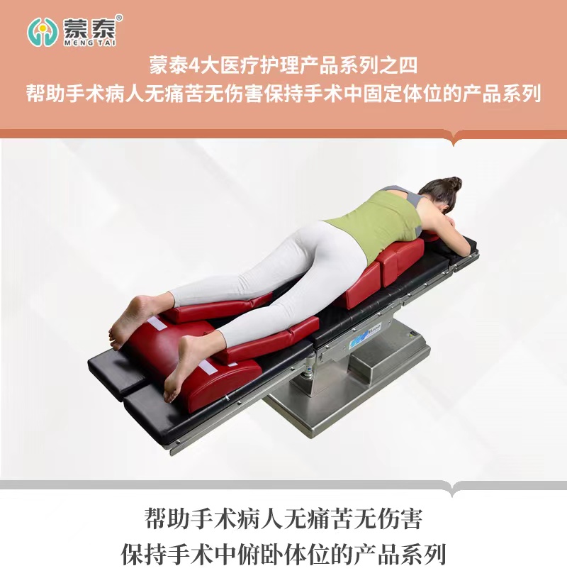 2、胸部墊俯臥體位墊,雙上肢緊貼身體用中單壓于手術床墊下。腹部空出,保持呼吸通暢。
